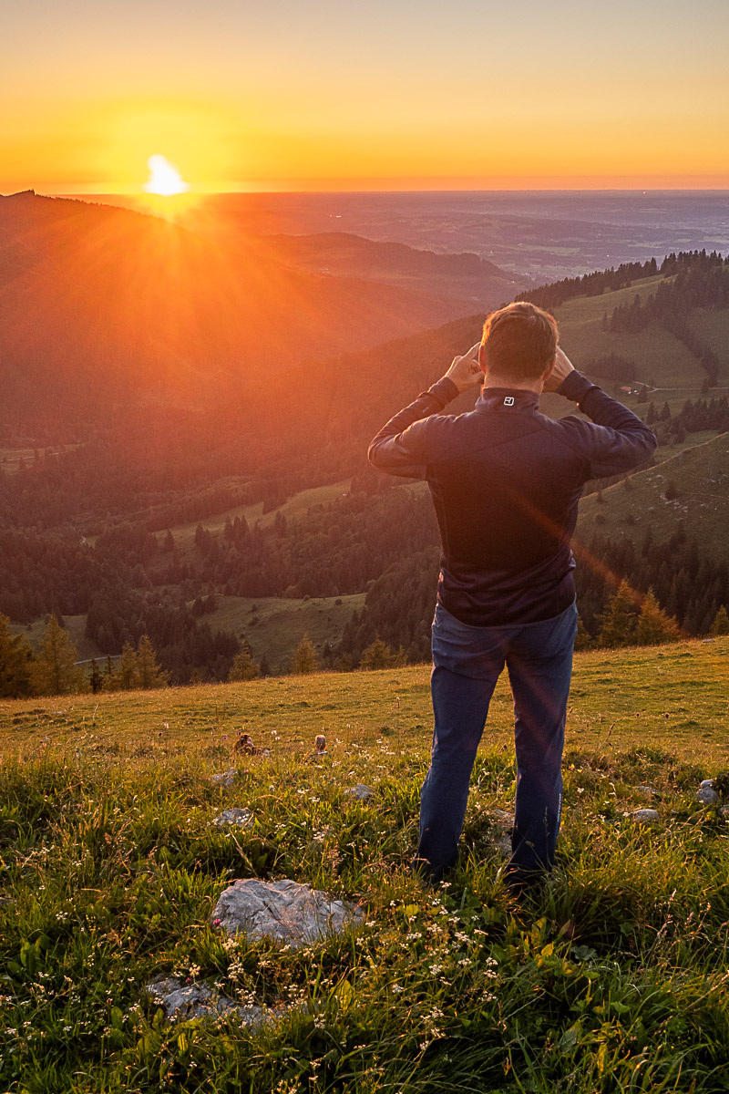 Umso schöner anzusehen war jedoch der Sonnenaufgang. Eine kleine Gewitterzelle hat sich langsam von Miesbach nach Rosenheim verschoben, während sich der Himmel langsam rot gefärbt hat. Ein farbenfrohes Spektakel.