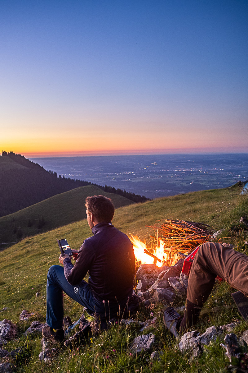 Umso schöner anzusehen war jedoch der Sonnenaufgang. Eine kleine Gewitterzelle hat sich langsam von Miesbach nach Rosenheim verschoben, während sich der Himmel langsam rot gefärbt hat. Ein farbenfrohes Spektakel.