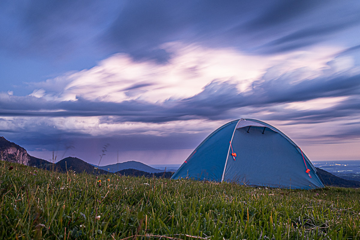 Umso schöner anzusehen war jedoch der Sonnenaufgang. Eine kleine Gewitterzelle hat sich langsam von Miesbach nach Rosenheim verschoben, während sich der Himmel langsam rot gefärbt hat. Ein farbenfrohes Spektakel.
