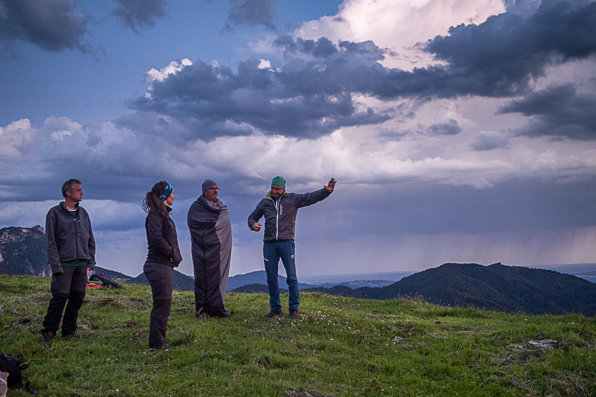Umso schöner anzusehen war jedoch der Sonnenaufgang. Eine kleine Gewitterzelle hat sich langsam von Miesbach nach Rosenheim verschoben, während sich der Himmel langsam rot gefärbt hat. Ein farbenfrohes Spektakel.